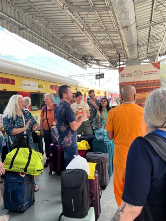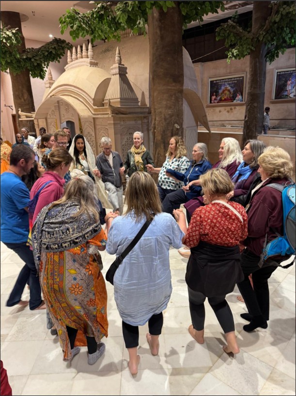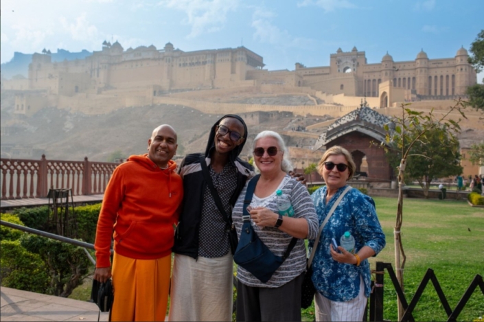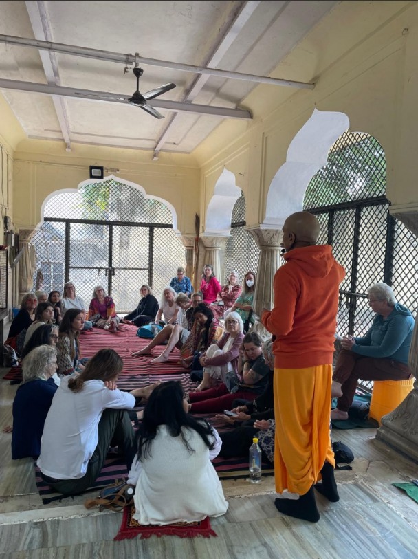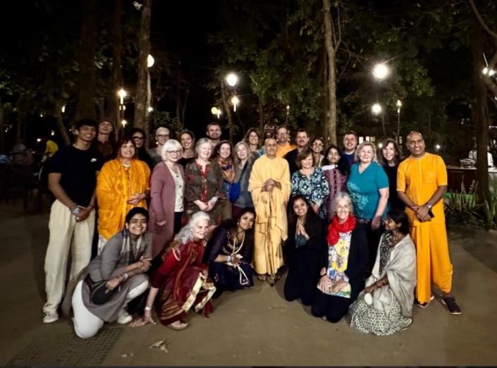 I found a more in depth knowledge of & relationship to Hara Krishna, the rituals and devotional practices and a better understanding of the Bhagavad Gita with interpretations by the monks. They were such an added bonus to this journey and hopefully can return on the next trip. As well more heart opening connection to the culture ,environment, landscape, people, Hindi traditions through a vibrant lens India offers. I do love the Soul connection I experience while here. You have a delicous heart opening itinerary in place that can be tweaked to your liking….Again I thank you for such an outstanding experience , friendships made with many …of course with the two of you, with Radhanath Swami and Krishna. Grateful I am…